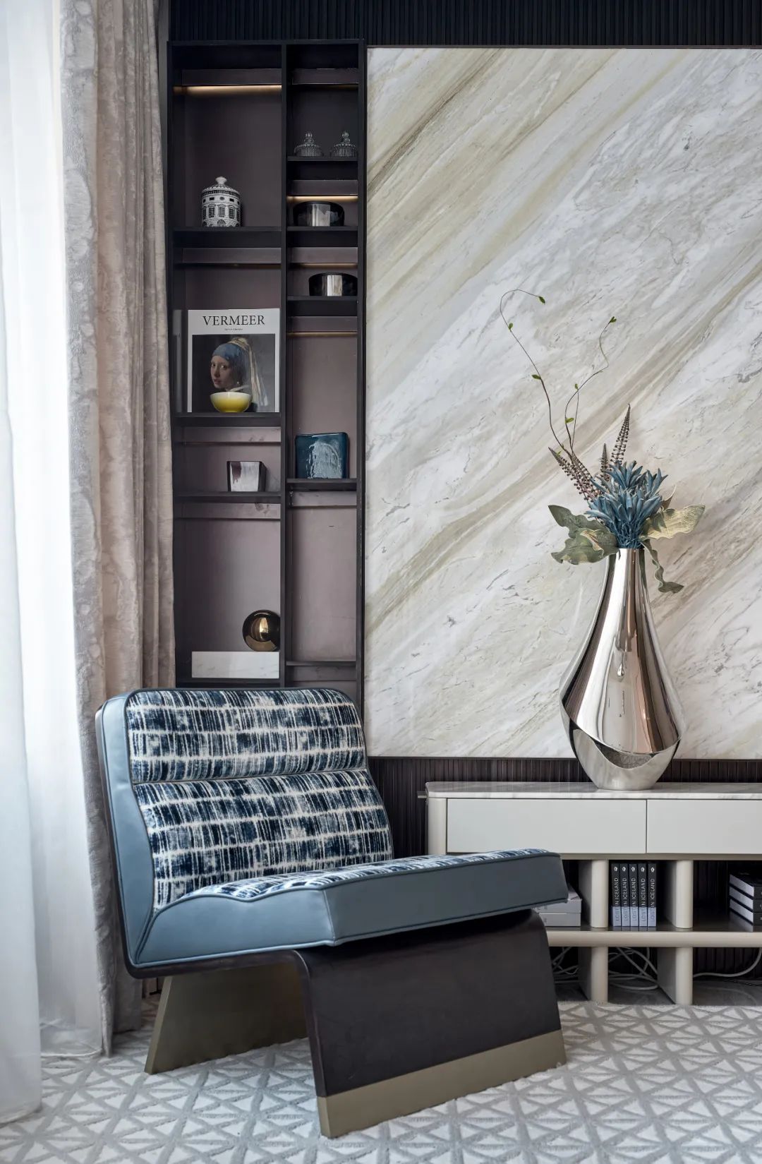 長夜?jié)u晚,柔和燈光下閱讀一本書,享受獨(dú)處的時光。飽含詩意,囊括情感上的共鳴與空間所具備的舒適度,并相得益彰,營造出靜謐的藝術(shù)氛圍,從功能上提供舒適的生活環(huán)境,現(xiàn)代美學(xué)于寧靜中優(yōu)雅盛放。