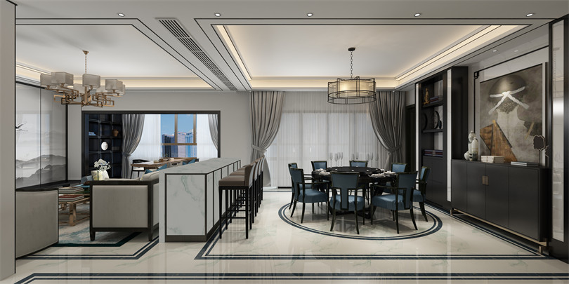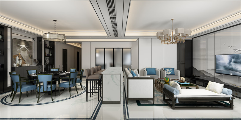 廣州御湖名邸四居新中式風(fēng)格裝修效果圖