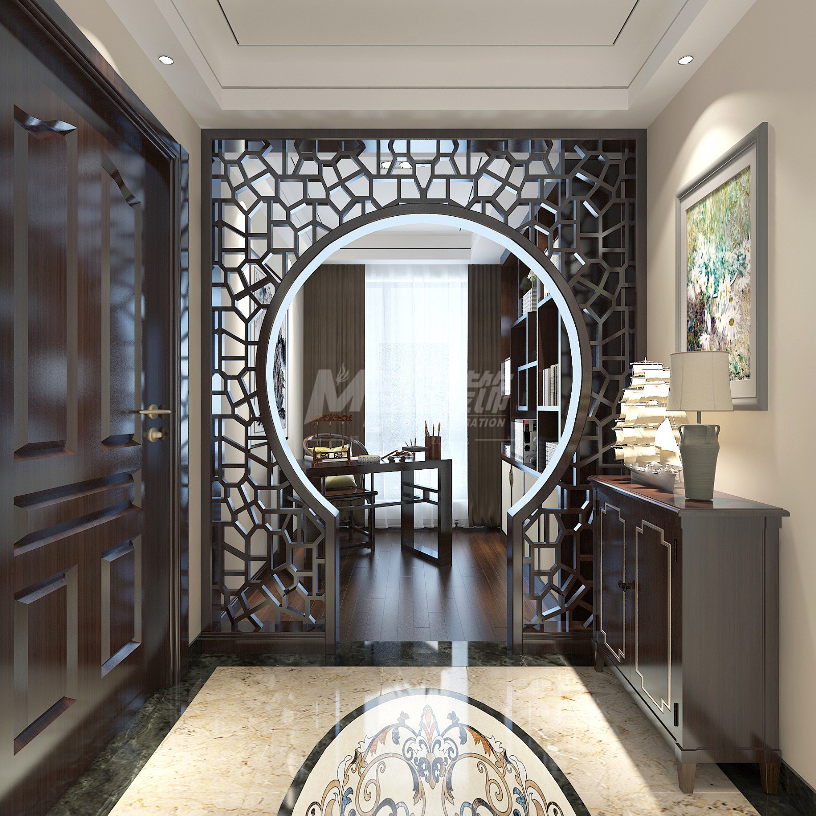 舟山山海灣三居新中式風(fēng)格裝修效果圖