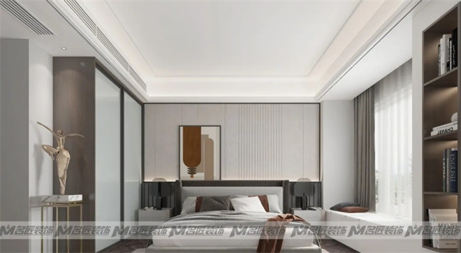 主臥的衣柜藏有“玄機”,與床頭柜輕觸的抽屜不過是個偽裝者。打開柜門上下兩個掛衣桿解決掛衣收納難題且完美避開床頭柜。深淺不一的咖色系與灰色系,沉穩(wěn)內(nèi)斂又豐富。