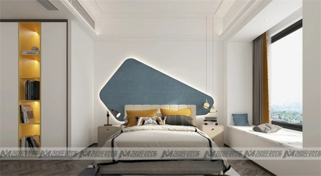 黑白灰不應該是永遠的百搭色,我們的眼睛需要另外一種更加治愈的顏色。設(shè)計師運用時髦的亮黃色與藍色,讓專屬于孩子的睡眠空間溫暖而有時尚感。整體在軟裝和墻體的條型的映襯下格外明朗。