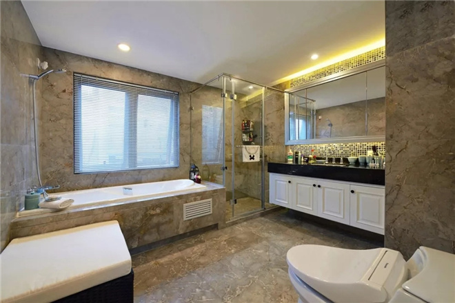 衛(wèi)生間是屬于復(fù)古風(fēng)的,古樸的地磚、墻磚,展現(xiàn)樸實優(yōu)雅的外觀,打造出溫暖的居室氛圍。