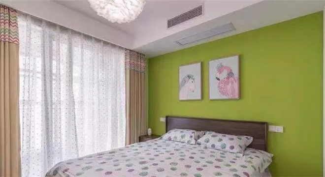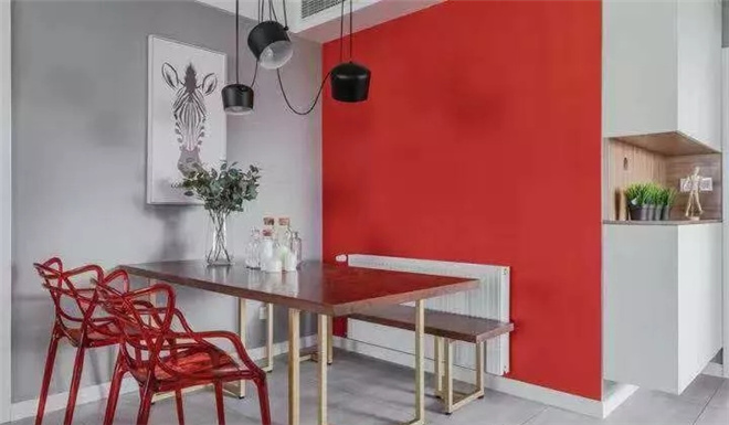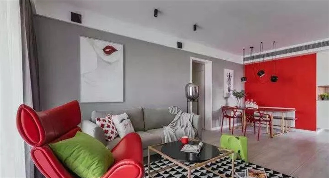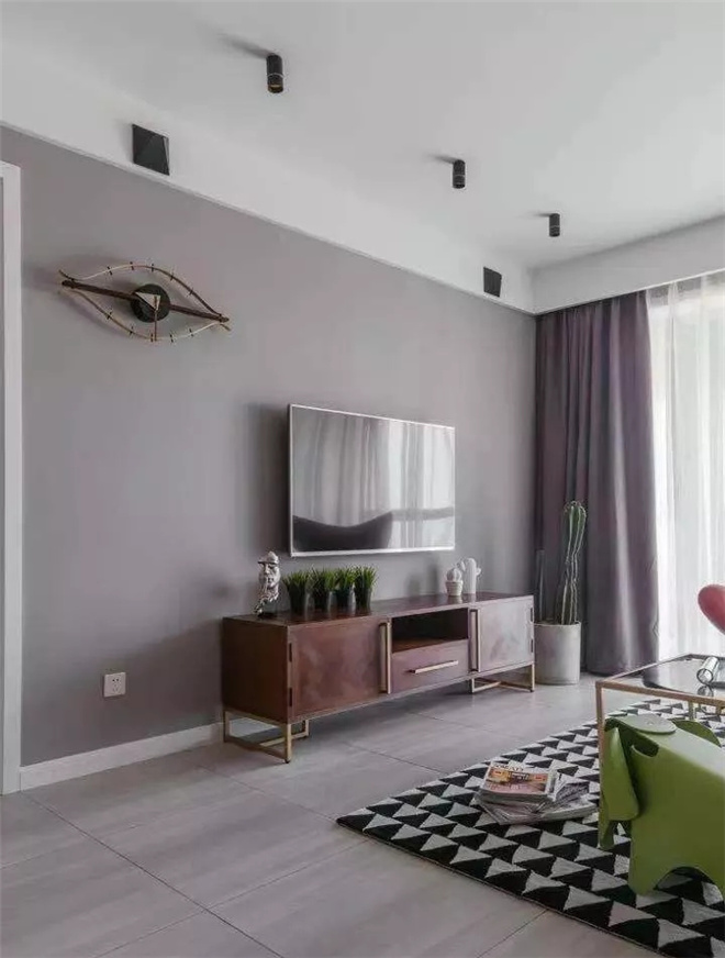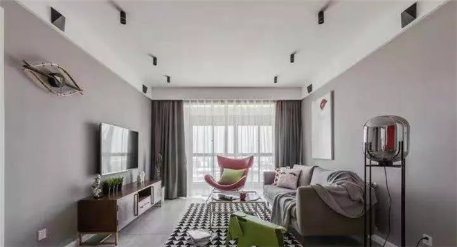 客廳是交友的娛樂中心??梢钥吹秸w線條簡約流暢,點(diǎn)綴色彩對比強(qiáng)烈!客廳的影視墻采用的是淺色乳膠漆打底,既大方又很有氣派。喜歡北歐風(fēng)格,但又不希望被單調(diào)的白色拘束,設(shè)計(jì)師最終給了小夫妻驚喜。