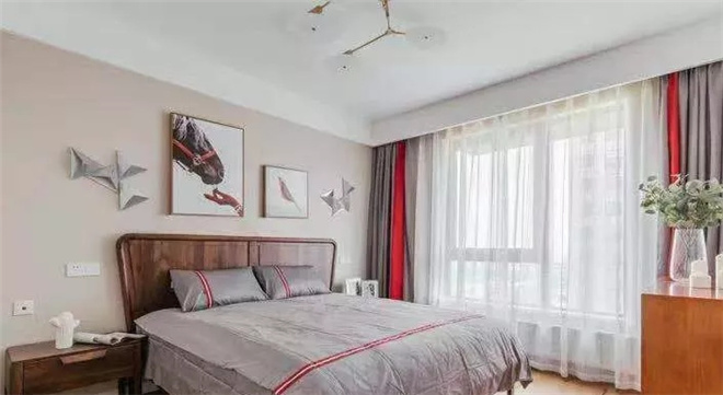臥室的色彩要與主題相互呼應(yīng),這個(gè)沒有過多的色彩,布置和家具,沒有喧囂與繁復(fù),一派寧靜悠遠(yuǎn),顯示出業(yè)主溫文爾雅,平和理性的特點(diǎn)。
