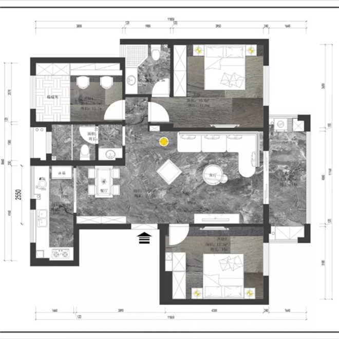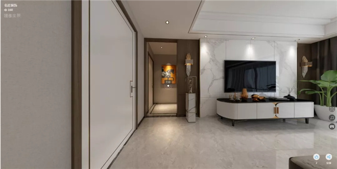 將所主臥室房門外移,將該衛(wèi)生間納入主臥,這樣避開衛(wèi)生間門對大門,設(shè)置一個對景裝飾,整體效果更為合理。