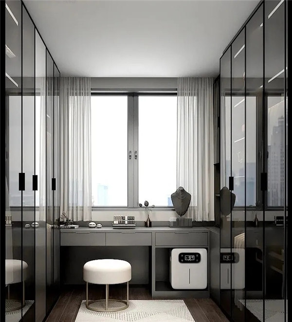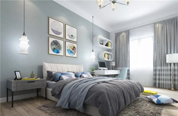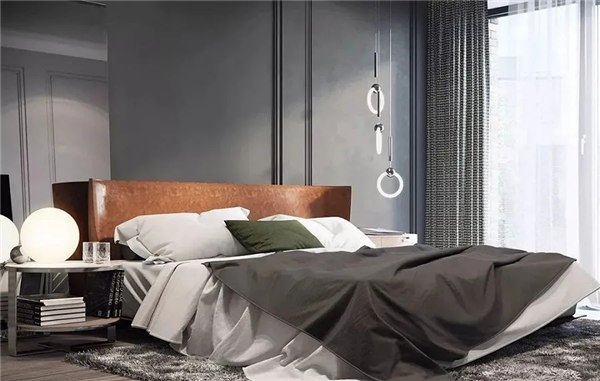 臥室空間整體采用黑灰色調(diào)搭配木質(zhì)地板,穩(wěn)重,大氣,卻又不失品味,有令人眼前一亮的感覺。