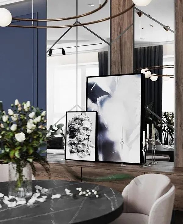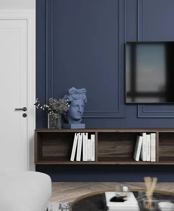 白色背景墻與電視墻藍色調(diào)相結(jié)合,形成一種清新明亮的視覺效果,搭配一些原木色家具,營造出一個簡約而有型的輕文藝之家。