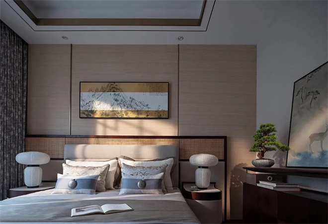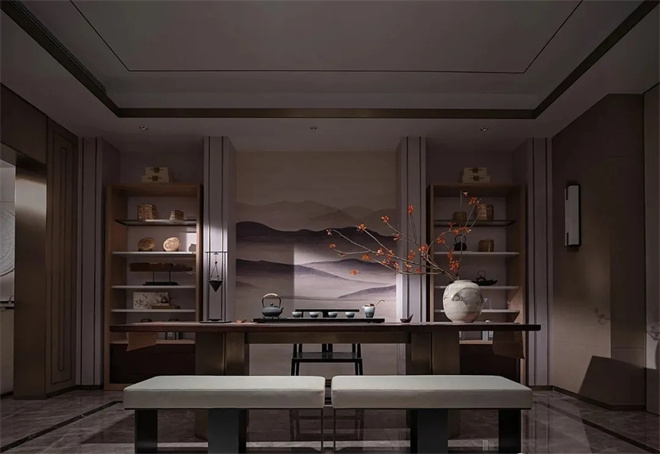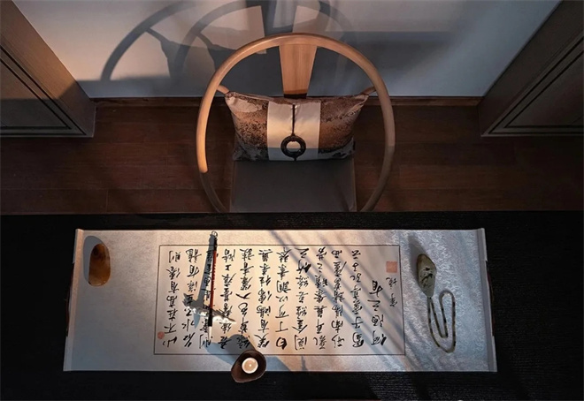 從中式和現(xiàn)代中尋找到適合空間的藝術(shù)品,強(qiáng)調(diào)了空間的別趣和精致,傳承著東方的新貴和雅致。