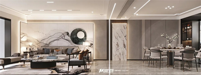 讓空間不至于局促憋悶。再依據(jù)現(xiàn)代裝修的特點(diǎn)結(jié)合大理石、黃銅、水晶等元素