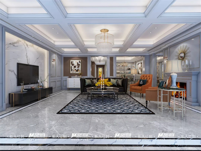 客廳圍繞美式輕奢風(fēng)格,突出都市、時尚、小資的氛圍打造,不同于傳統(tǒng)美式,更強(qiáng)調(diào)輕奢的格調(diào)。