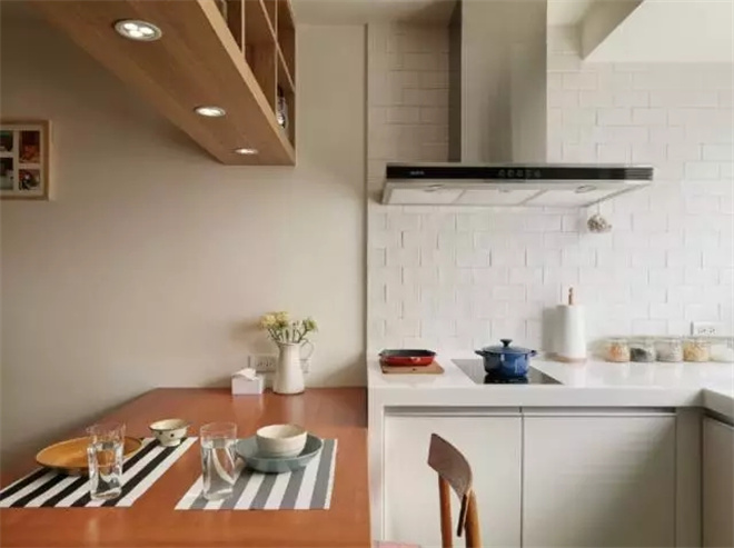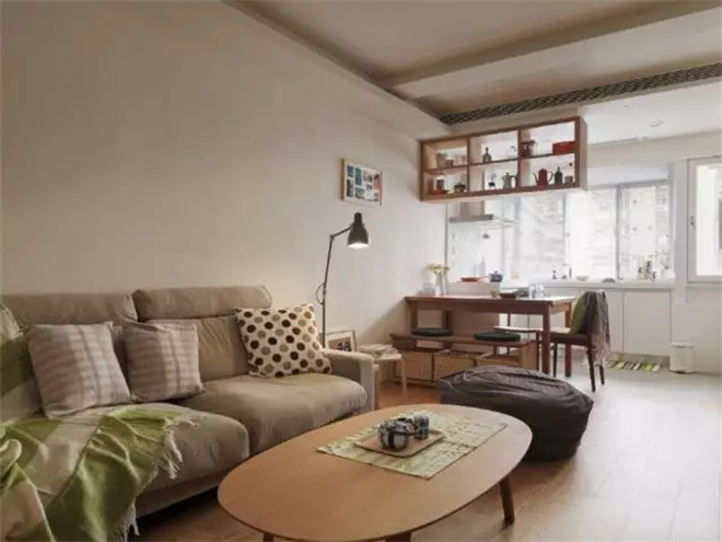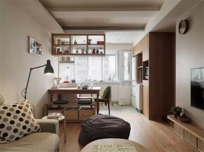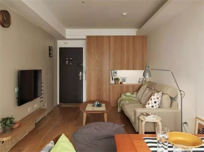 木質(zhì)的柜子更具有生活的氣息,旁邊就是通往臥室的門(mén),推拉式的木門(mén)