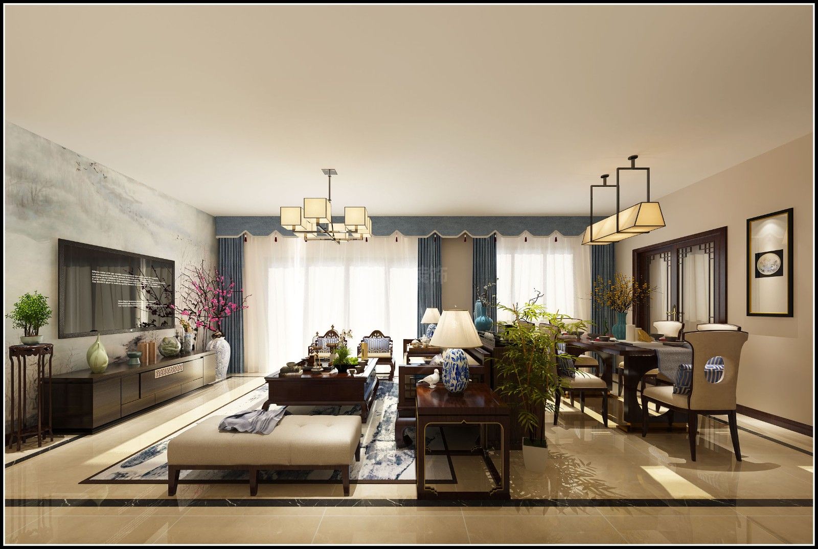 惠州101-200平米新中式風格榮泰河庭室內(nèi)設計效果圖
