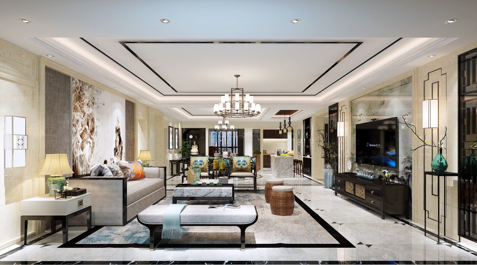 江門201-300平米新中式風(fēng)格白云尚城裝修設(shè)計效果圖