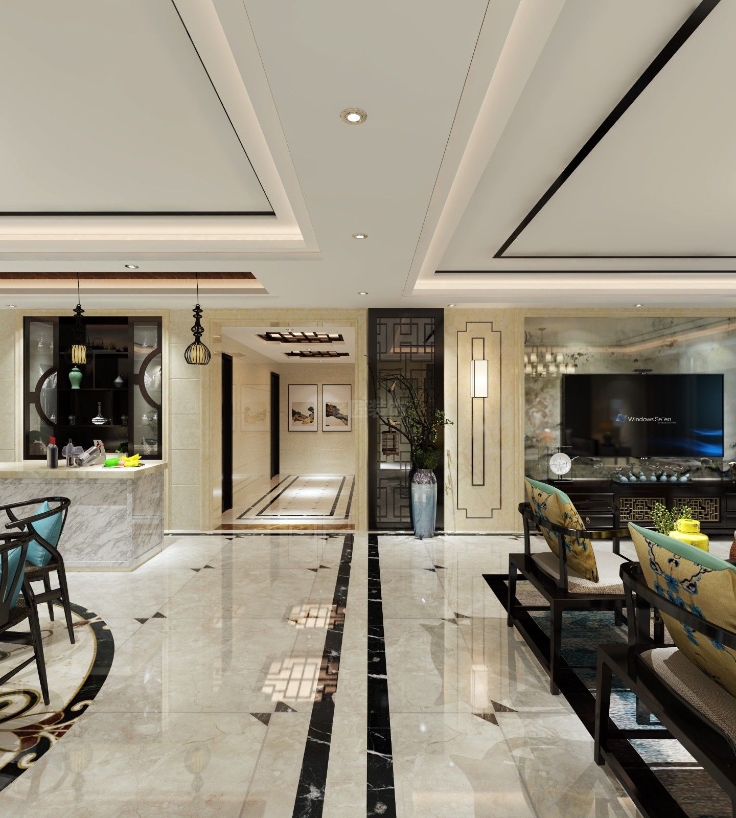 柳州201-300平米新中式風(fēng)格大信海岸家園裝修設(shè)計案例