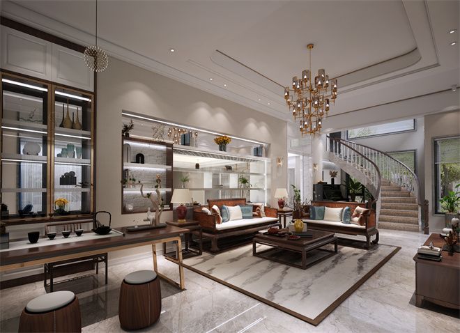 中山保利林語別墅新中式風(fēng)格裝修效果圖