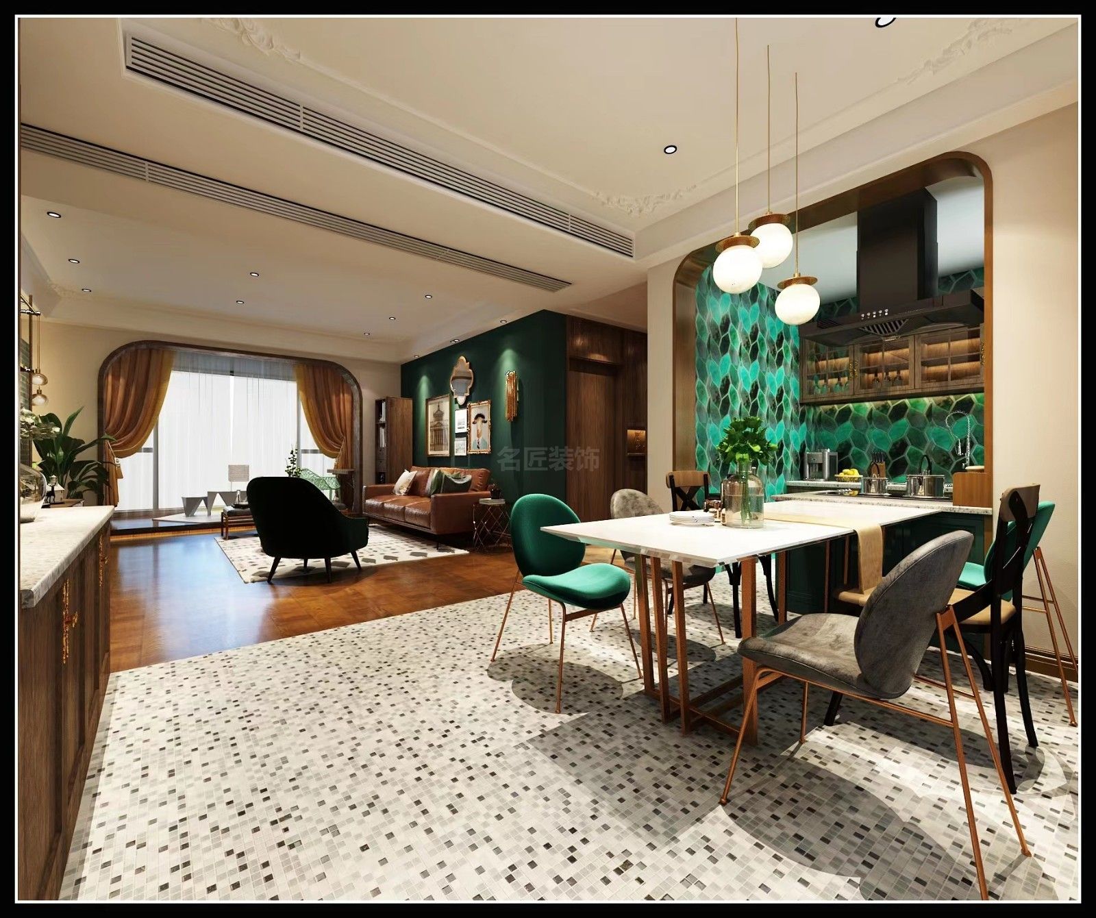 文山壯族苗族自治州101-200平米美式風(fēng)格中天名郡家裝設(shè)計(jì)效果圖