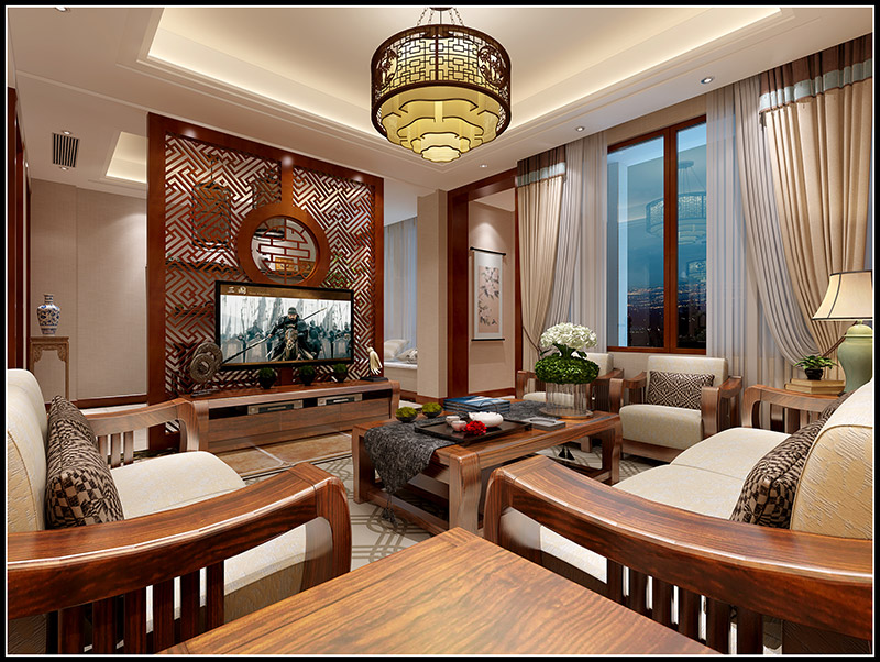 惠州101-200平米新中式風(fēng)格榮泰河庭家裝設(shè)計(jì)效果圖