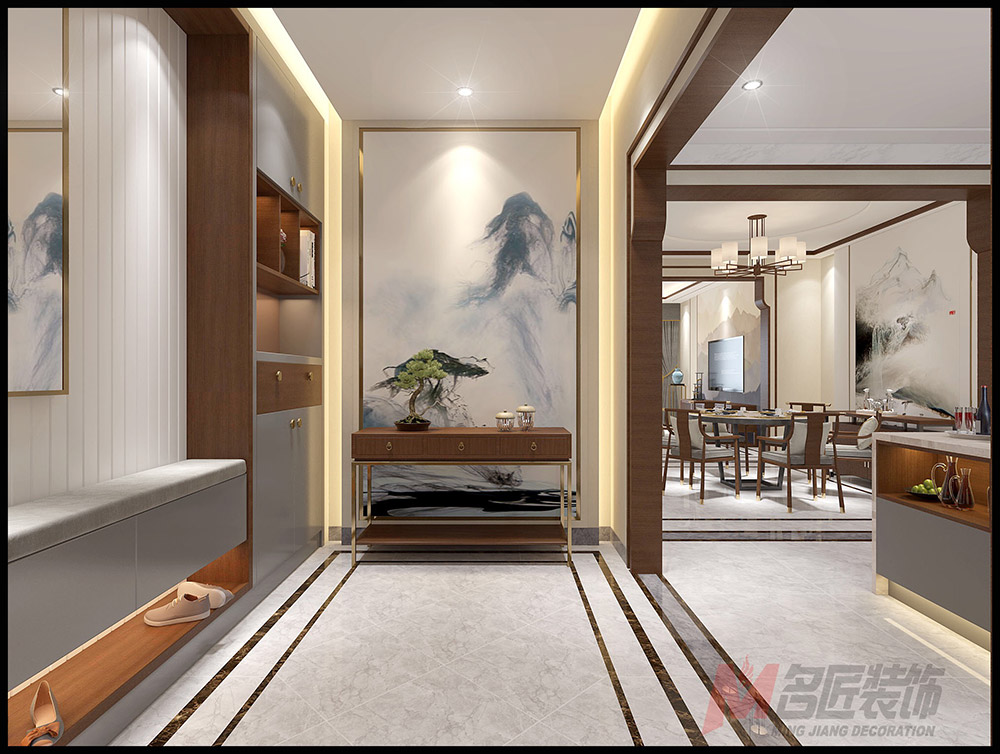 惠州101-200平米新中式風格榮泰河庭家裝設(shè)計效果圖