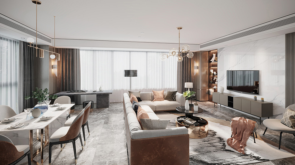 廣州101-200平米現(xiàn)代簡約風(fēng)格遠(yuǎn)洋天祺家裝設(shè)計(jì)效果圖