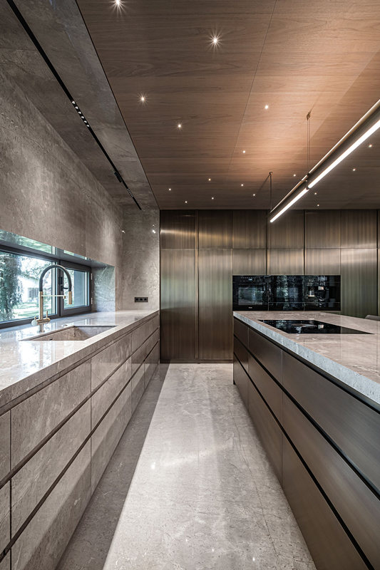 金屬拉絲櫥柜大膽前衛(wèi),紋理細(xì)膩,搭配嵌入式烤箱,為廚房省出更多臺(tái)面的操作空間。