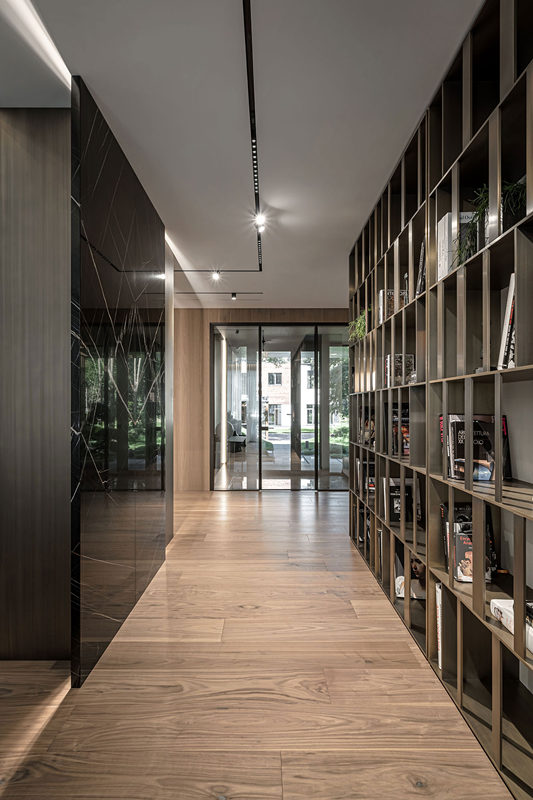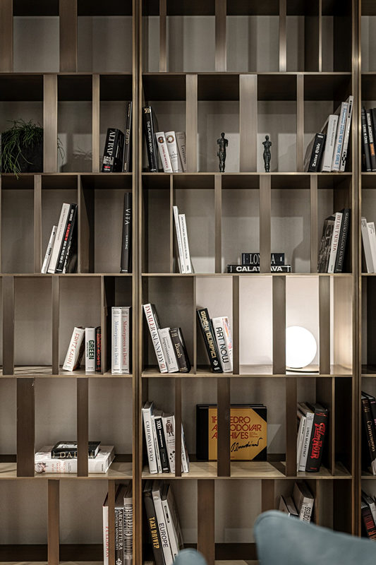 頂天立地的展示型書架不但給家?guī)?lái)文化氣息,還提供了充足的存書空間。