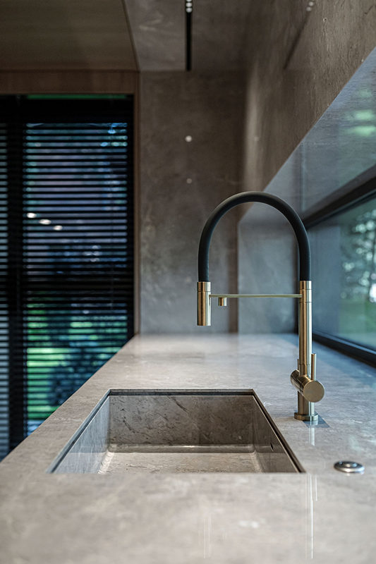 石材和金屬自帶誘人的光澤,在點(diǎn)點(diǎn)燈光的映襯下,扎實(shí)中透露出靈動(dòng),提升了整個(gè)家的氣質(zhì)與品位。